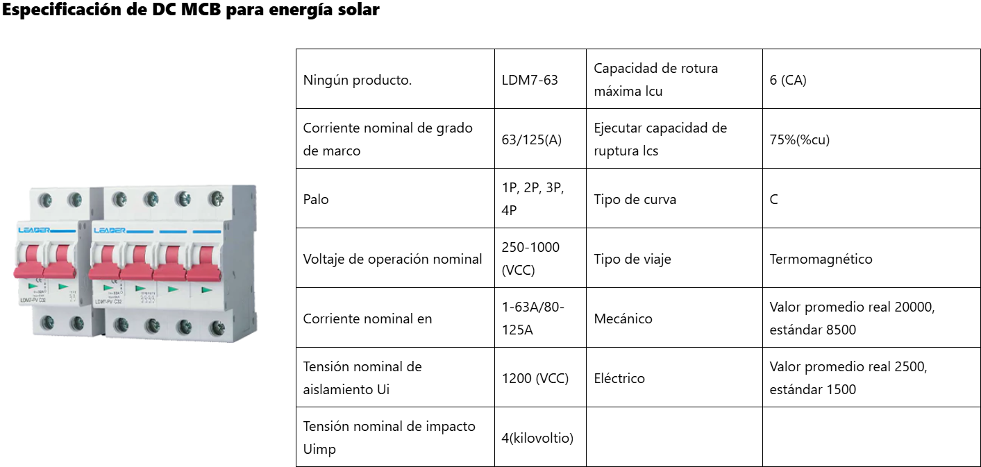 - Disyuntores DC MCB diseñados para sistemas solares fotovoltaicos