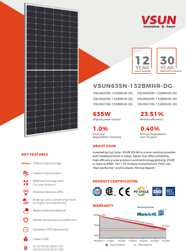 VSUN 635W-132BMHR-DG Panel Solar Japones TIER1